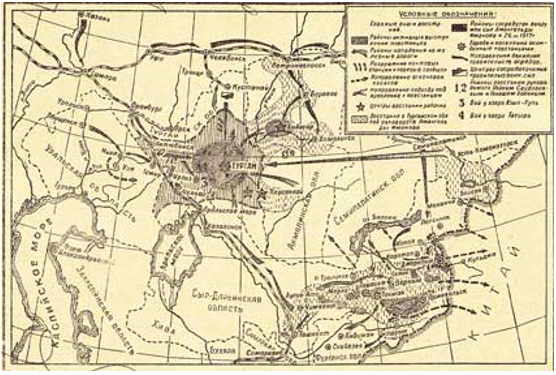 Карта национально-освободительного восстания казахов в 1916 г.