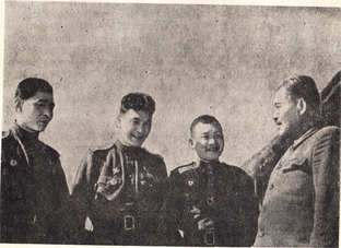 Слева направо гвардии рядовой Махамбетов, Герой Советского