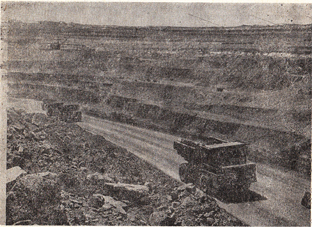 дительными системами разработки с массовой отбойкой. На Соколовско-Сарбайском горно-обогатительном комбинате все процессы от вскрышных работ до погрузки обогащенной и отсортированной руды в железнодорожные эшелоны выполняли уникальные механизмы: 14-кубовые шагающие экскаваторы, 25-тонные самосвалы.