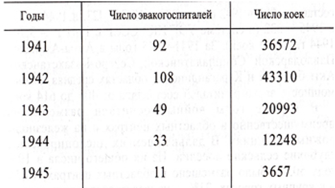 Основная задача тыловых эвакогоспиталей -долечивание и скорейшее восстановление боеспособности раненых и больных — была решена организацией специализированной медицинской помощи. Первые же месяцы войны показали, что число запланированных специализированных коек в госпиталях оказалось недостаточным. Поэтому с самого начала войны этому вопросу уделяли особое внимание. В начале 1942 года был издан приказ Наркомздрава СССР и Главного военносанитарного управления Красной Армии “О развертывании специализированных госпиталей и их дислокации”.